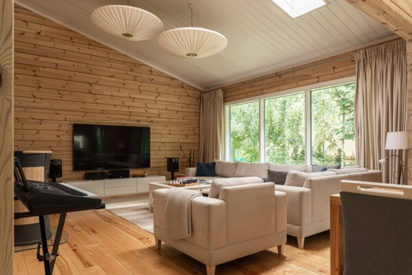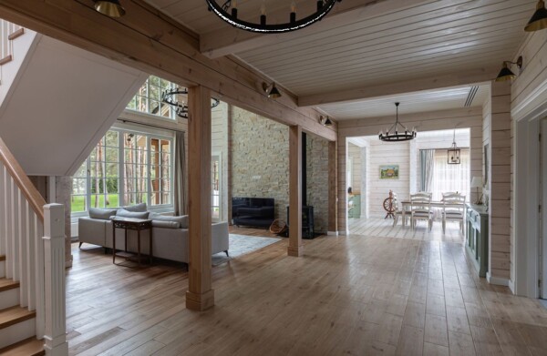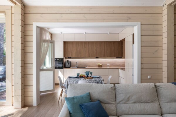 Możliwości projektowania wnętrz w drewnianym domu są znacznie większe. Niezależnie od wybranego stylu – klasycyzm, prowansja, high-tech – doskonały wygląd i przytulność są gwarantowane. Drewniane ściany mają doskonałą temperaturę kolorów i tworzą atmosferę relaksu i spokoju.