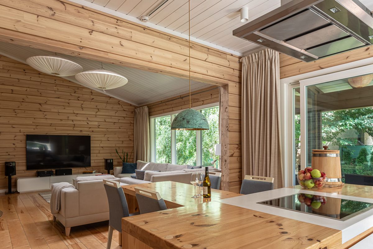 Możliwości projektowania wnętrz w drewnianym domu są znacznie większe. Niezależnie od wybranego stylu – klasycyzm, prowansja, high-tech – doskonały wygląd i przytulność są gwarantowane. Drewniane ściany mają doskonałą temperaturę kolorów i tworzą atmosferę relaksu i spokoju.